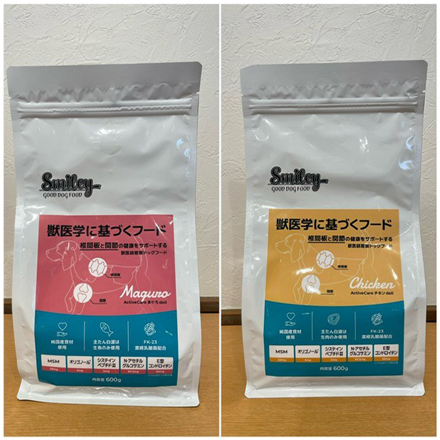 大人気のスマイリーシリーズに、動物病院用製品でも特に効果が期待される椎間板と関節の健康維持をサポートする成分を配合しました!